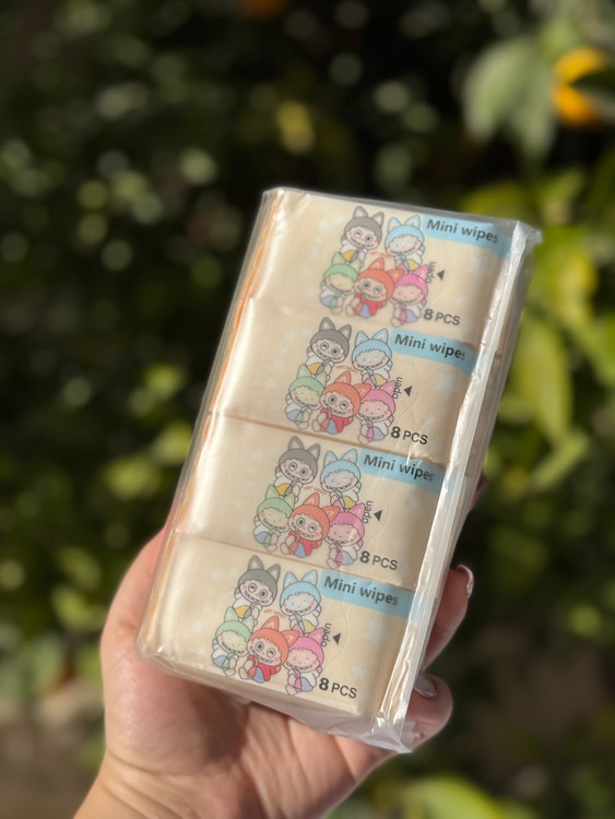 هر بسته شامل 8 پک کوچولوی جداست که تو هر پک هشت برگ دستمال مرطوبه